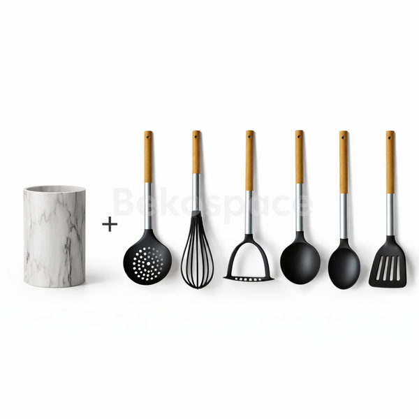 ENSEMBLE D'USTENSILES AVEC POT EN EFFET MARBRE