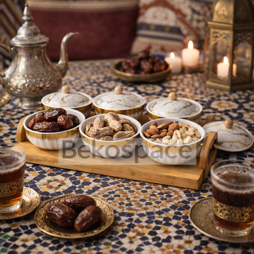 Polyvalence : Que ce soit pour le f'tour pendant le Ramadan, pour accompagner le thé à la menthe ou pour un apéritif entre amis, ce set s'adapte à toutes les occasions.