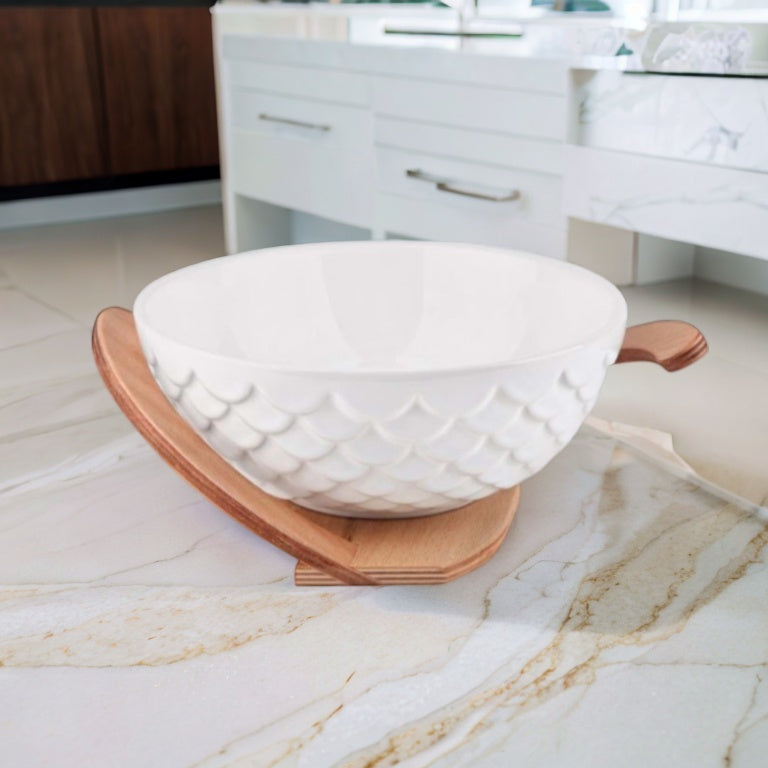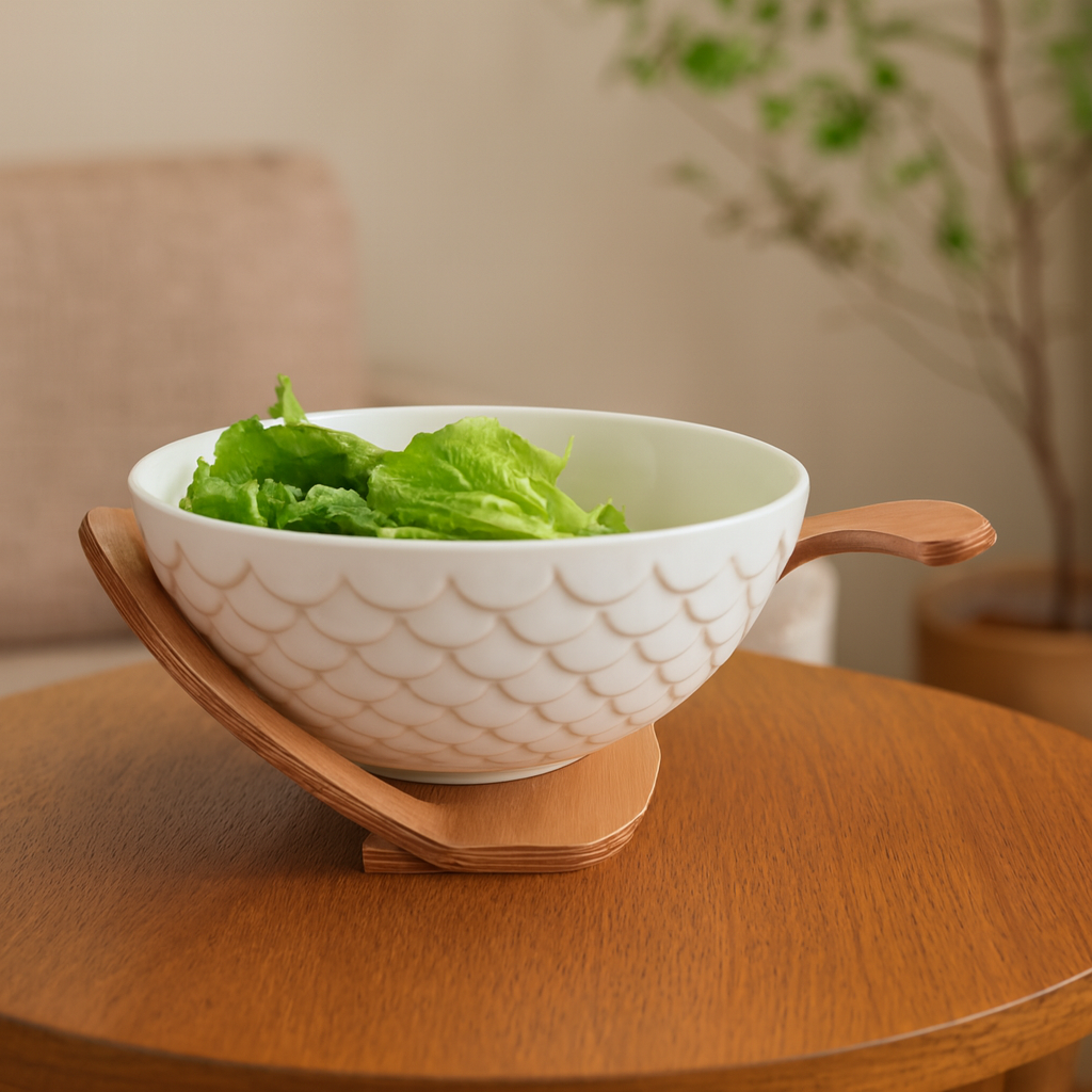 Apportez une touche éco-chic à vos repas avec ce saladier en bambou minimaliste, idéal pour servir vos salades et fruits avec style.