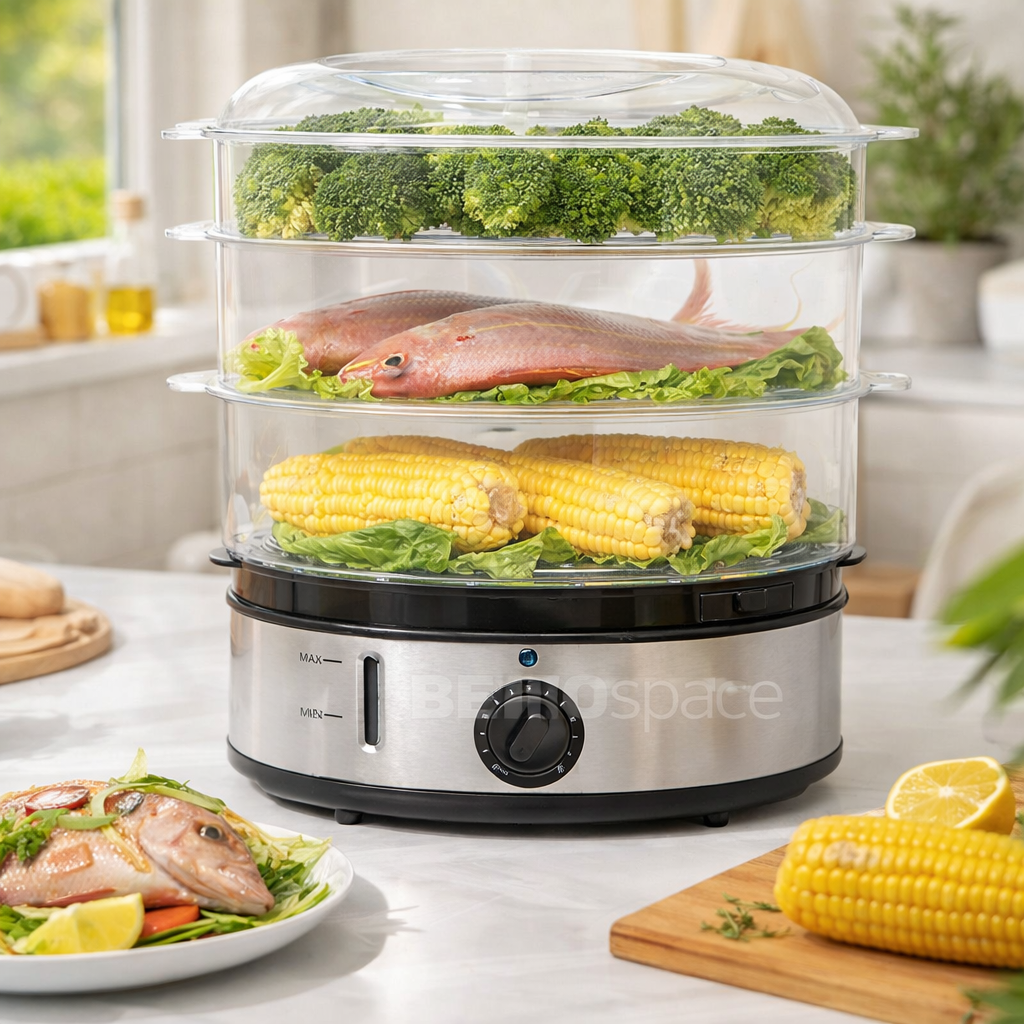 Gagnez 30 minutes chaque soir : Pourquoi utiliser trois casseroles quand vous pouvez tout cuire en une fois ? En empilant vos paniers, vous lancez votre poisson, vos légumes et vos féculents simultanément. Un seul appareil à surveiller, un seul appareil à nettoyer.