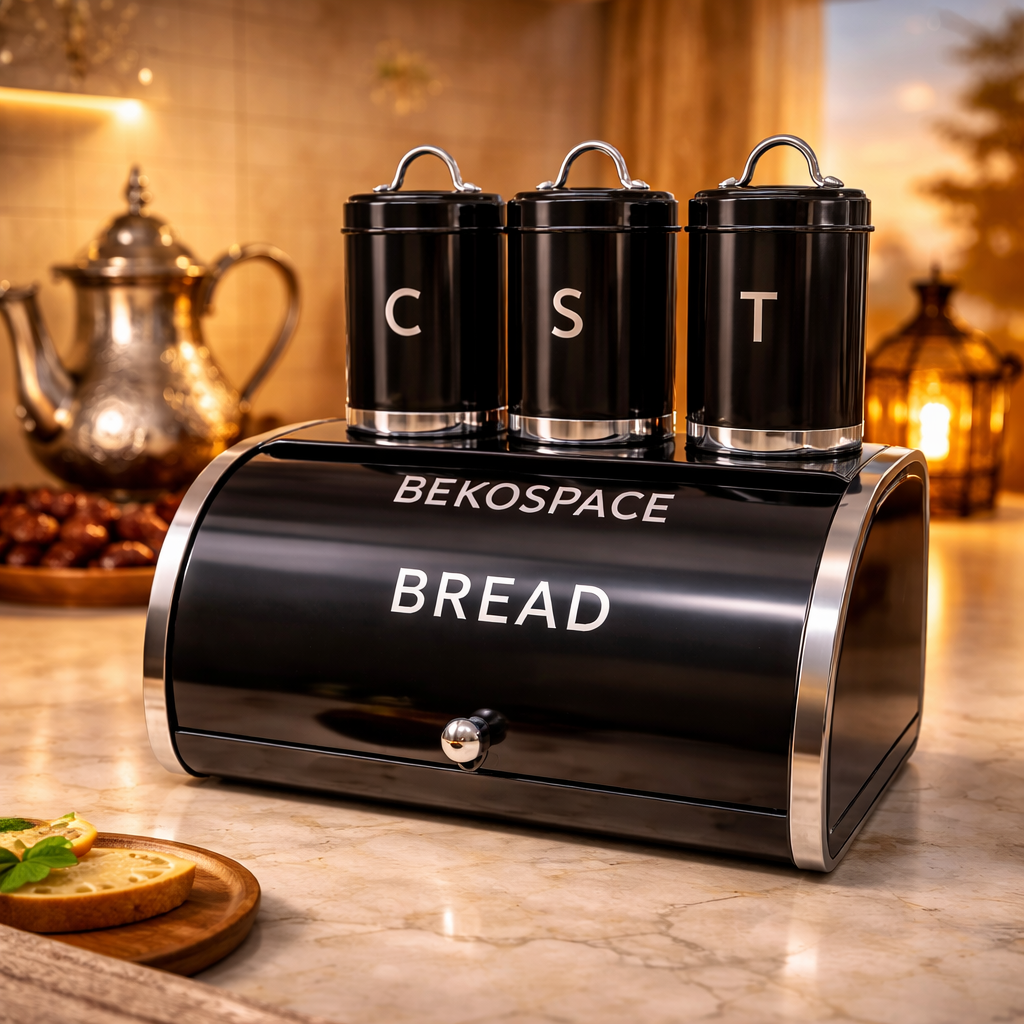 Minimalisme intelligent : Les bocaux se superposent sur la boîte à pain pour libérer l'espace. Moins d'encombrement, plus de respiration.
