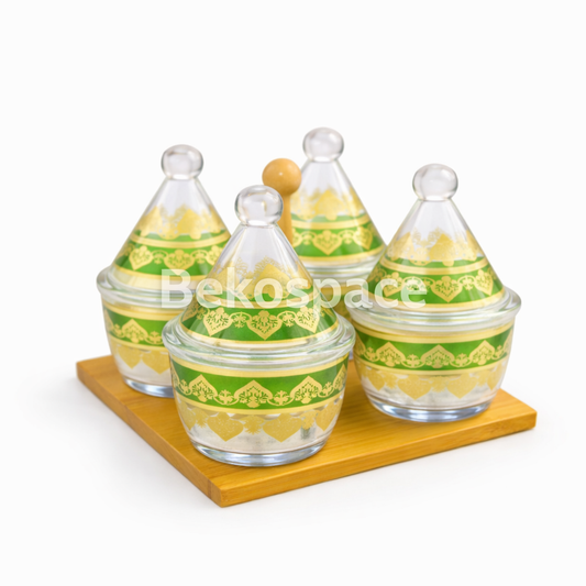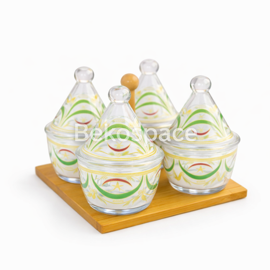 SERVICE DE TABLE 4 PIÈCES AVEC SUPPORT EN BAMBOU