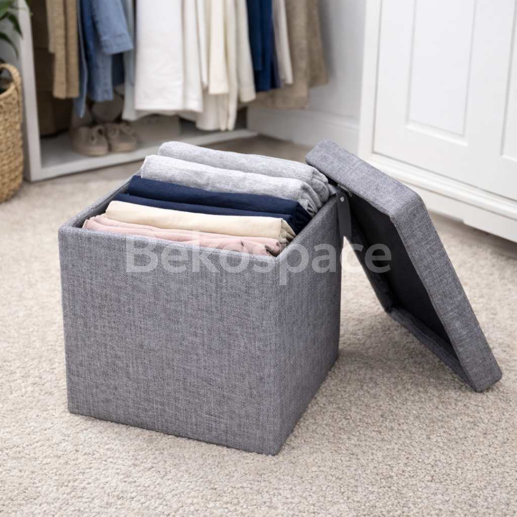 Sous son apparence minimaliste se cache un espace de rangement intelligent, idéal pour accueillir vêtements pliés, linge de maison, accessoires ou objets du quotidien. Son couvercle discret permet de garder votre intérieur visuellement ordonné, tout en protégeant le contenu de la poussière.