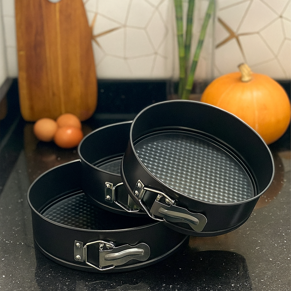 Réalisez des gâteaux parfaits à chaque fois avec notre ensemble de 3 moules à gâteaux antiadhésifs, conçus pour une cuisson uniforme, un démoulage facile et un résultat professionnel à la maison.