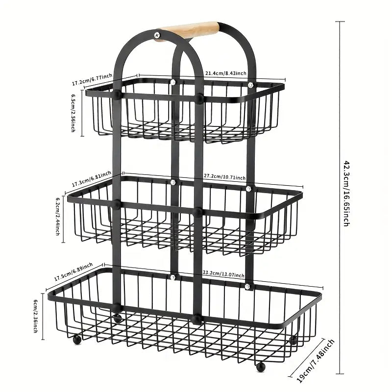 Gain d’espace immédiat : Trois étages pour ranger plus de fruits, légumes ou pains sans encombrer votre plan de travail.