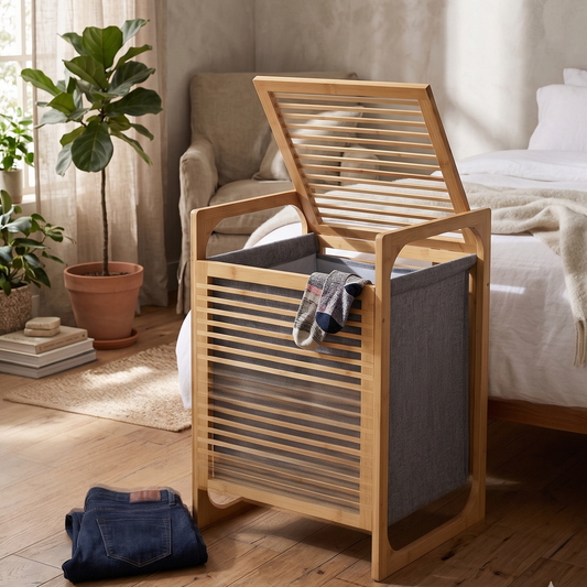 Panier à Linge Scandinave Bambou & Sac Amovible